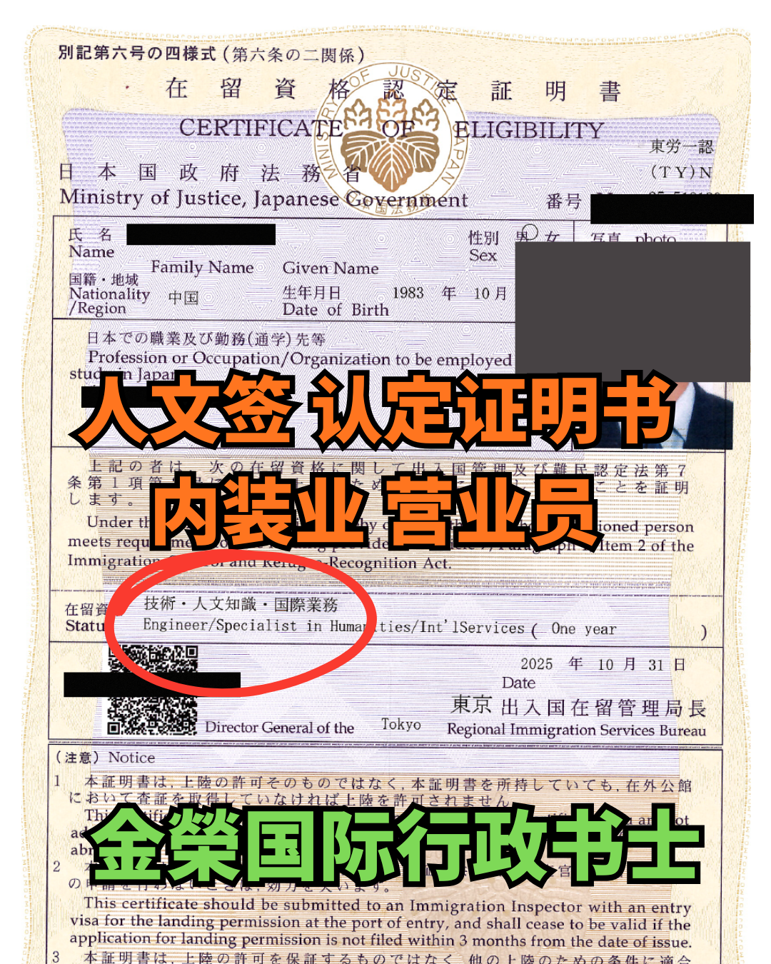 これらの徹底した立証活動により、「内装業の営業スタッフ」として専門性が認められ、「技術・人文知識・国際業務」の在留資格許可を得ることができました。
